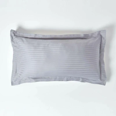 HOMESCAPES Grey Pure Egyptian Cotton King Size Oxford Pillowcase 330 TC 500 Thread Count Percale Equivalent Satin Stripe Pillow Case