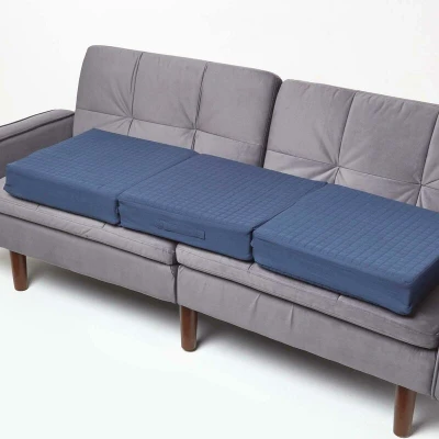 ManoManoGeneral description HOMESCAPES Charcoal Grey Cotton Orthopaedic Foam 3 Seater Booster Cushion is a supportive and extra-large cushion designed for large 2 and 3 seater sofas. It provides lasting support to the back, hips, and knees while sitting, making it ideal for the elderly and pregnant women. Technical specifications Brand: Homescapes Size: 150 x 50 x 10 cm Material: Cover - 100% Cotton; Filling - Polyester Filling with Orthopaedic Foam (33/190) Installation The cover features a compartment for each of the 3 square foam cushions, accessible via a zip running down 2 adjacent sides, allowing for easy insertion and removal of the foam. Usage Designed for everyday use, the cushion is easy to transport with a handy carry handle and can be folded away when not in use. The removable cover is machine washable, ensuring the cushion remains clean and fresh. Other information The soft casing features a square pattern quilting lined with thick and durable polyester for added comfort.