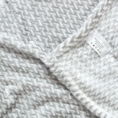 HOMESCAPES Grey Velvet Throw 130 x 160 cm Soft ‘Mora’ Faux Fur Blanket Jacquard Chambray Weave Bed Sofa for Single Beds and Armchairs