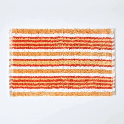 Amazon40cm x 60cm approx (S) A perfect fit for smaller spaces such as porches or conservatories, as well as laundry rooms and bathrooms Machine washable and handmade using 100% cotton, producing a soft, absorbent and stylish bathmat Contemporary orange/white duotone striped pattern to encompass a fresh, modern feel in your home Features a practical non-slip backing to allow function as a bathroom and shower rug Manufactured by Homescapes to ensure a high quality product at an unbelievable price