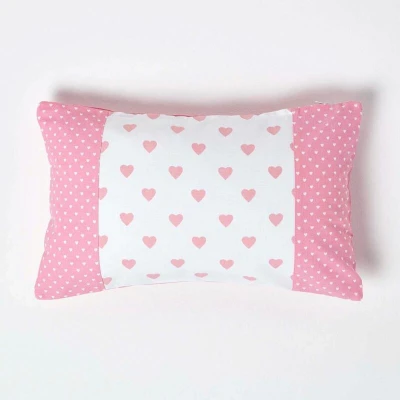 HOMESCAPES Hearts and Polka Dots Cushion Cover 30 x 50 cm Rectangular 12 20 Inches Pink White Patchwork 100% Cotton Sofa Pillow Washable