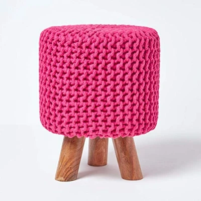 AmazonHomescapes footstool with 3 wooden support legs. 100% cotton knitted, woven design. Use as a relaxing footstool or occasional seat. Structured wooden frame to ensure long lasting rigidity. Structure wood frame to ensure long lasting rigidity. Available in several complimenting colours and sizes. Designed and manufactured by Homescapes to go with a selection of contemporary soft furnishings, knitted footstool cubes and pouffes