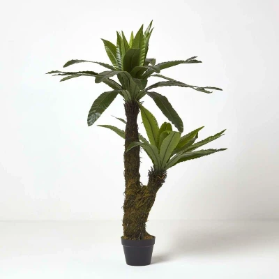 ManoManoGeneral description This HOMESCAPES Artificial Bird's Nest Fern is a stunning addition to your home decor, standing at an impressive height of 120 cm. Crafted with care, this tropical faux fern features a lifelike appearance, complete with a wooden effect trunk and faux moss at the base for an authentic touch. It is designed to enhance the natural look of your interiors without the maintenance required by real plants. Technical specifications Brand: Homescapes Plant Height: 120 cm Pot Dimensions: H 14 cm x W 18 cm Pot Base: 14 cm Colour: Green Material: Plastic Usage Ideal for styling in living rooms, hallways, or bedrooms. Requires no watering, making it a low-maintenance decor option. Keep out of direct sunlight to maintain its appearance. Wipe clean with a soft cloth to remove dust.