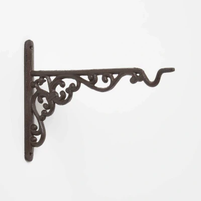 General description This decorative wall hanger features a charming Parisian style design and is perfect for hanging baskets up to 26.1 cm wide. It can be affixed to a wall, shed, or gate, making it an excellent choice for enhancing the front of your home or garden while saving space and adding a floral burst of color. Technical specifications Brand: Homescapes Size: 26.1 x 2.3 x 18.4 cm Colour: Brown Material: Cast Iron