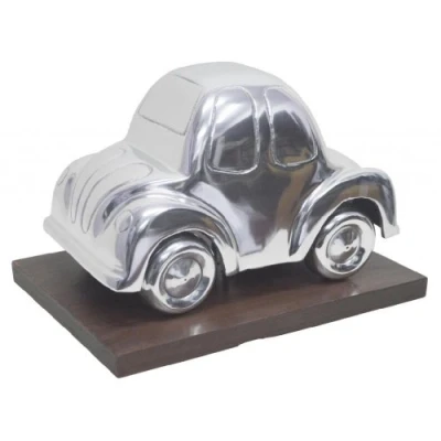 Unique VW Beetle Model with a shiny silver-finish A great gift idea for the young and the young at heart automible and VW Beetle enthusiasts. For decoration only Dimensions: 26.5 x 21.5 x 18 cm approx. Material: 100% solid Aluminium Very heavy quality. Looks great on shelves, side tables or sideboards Complemented by further decorative sculptures from Homescapes (Lancaster Bomber, Oldtimer Racing Car and Biplane) See more details below!