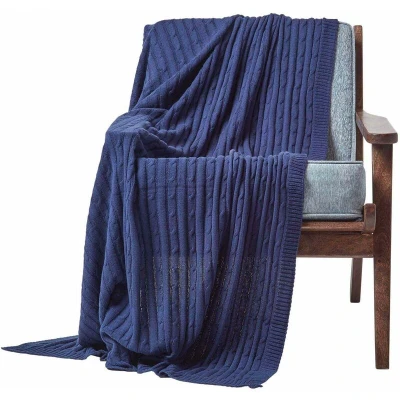 AmazonSuper soft and durable 100% fine combed cotton. Size: 150 x 200 cm. Colour: Navy Blue. Traditional cable add texture to this carefully knitted throw from Homescapes. A tasteful timeless classic design. Can be used as an additional layer on the bed, decorative throw over your furniture or just a soft snuggle in the sofa and also for an outdoor cozy comfort. 100% cotton knit makes it cool in summers and warm in winters which makes it an ideal blanket to snuggle in. Washable at home and always come out looking great. Yet another classic quality product manufactured by Homescapes.