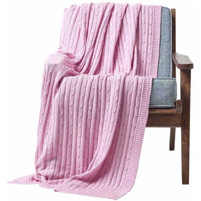HOMESCAPES Large Pastel Pink Cable Knit Throw 150 x 200 cm Combed Cotton Soft and Cosy Blanket Bed Sofa For Small Sofas Double Beds