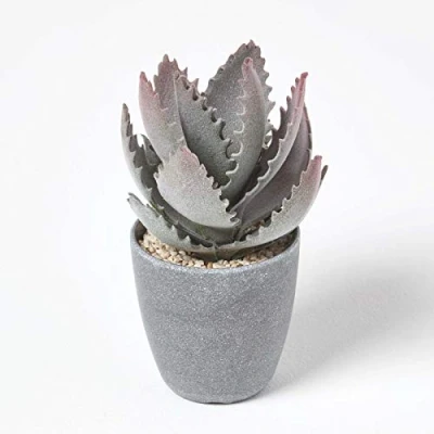 Artificial green and purple succulent arrangement from Homescapes, potted in a decorative grey melamine pot, measures 21cm tall. A modern style faux succulent cactus plant that is ideal for home, office desk or bathroom decoration. This decorative home accessory sits in a round pot and is surrounded by fake gravel. Handmade from a durable polyfoam and designed to replicate the real thing, this replica artificial plant has been UV treated to prevent colour fading. Carefully handcrafted by skilled experts, Homescapes' artificial cactus look just as good as real cactus plants and succulents. Easy to maintain, simply wipe away dust or dirt with a soft cloth and keep out of direct sunlight. Homescapes are a leading manufacturer of artificial plants, trees and flowers for the home and office. Choose from a wide selection of flowers and plants available in a range of colours, styles and sizes to add floral decoration to your home.