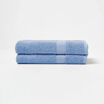 Set of 2 Bath Towels Size: 70 x 130 cm. Colour: Light Blue. A quality towel for everyday use in a heavy 500 GSM weight from Homescapes in 23 different colours. Six sizes are available in each colour. 100% finely combed cotton fibres ring spun and woven in Turkey. Towels from Turkey are known for the luxury they bring to every bathing experience. Retains its softness after wash due to higher quality of cotton fibre used in manufacturing. Washable at 40°C. For the best care of your towel, Homescapes recommends not to use fabric conditioner/softener whilst washing, and not to iron your towels as both reduce absorbency.