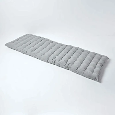 LUXURY BENCH CUSHION: Get comfortable with our expertly handmade 100% cotton garden bench cushion for outdoor or indoor use — Britain's premium bench seat cushion, loved by millions for 20+ years. Included: 1 x Light Grey 3 seater bench cushion (143 x 42 x 5 cm) ULTIMATE COMFORT: Generously filled with our specialist down-like Super Microfibre, your outdoor bench cushion is expertly engineered for perfect bounce-back and even padding that lasts. Versatile as a seat pad, back support or dining bench cushion. GENTLE TO SKIN & FUR: Certified kind to skin and planet, your hypoallergenic garden bench cushions 3 seater are anti-allergy, making them perfect for your pets, children or those with sensitive skin. Our luxury cotton is breathable and anti-dust mite, for all-year comfort. MACHINE WASHABLE: at 40C. Stylish as outdoor patio bench cushions, these luxury seat pads are also ideal as floor cushions, pet beds, for indoor seating or on loungers. Create a comfortable place to relax anywhere in your home and garden. Store indoors when not in use. STYLISH COORDINATING RANGES: Discover Homescapes' exclusive, must-have 100% cotton sets: from booster cushions to table linen and curtains. For 25+ years, Homescapes has offered uniquely affordable luxury, because our artisans create each lovely piece, with no middlemen.