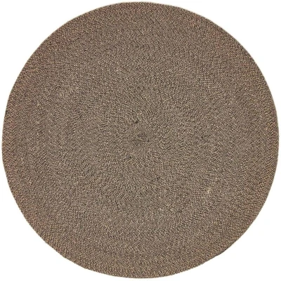 HOMESCAPES Linen and Black Handwoven Braided Melange Rug 150cm Round Pattern Large Cotton