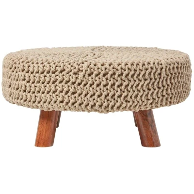 HOMESCAPES Linen Knitted Pouffe Footstool Occasional Seat 100% Cotton for Living Room Children or the Elderly
