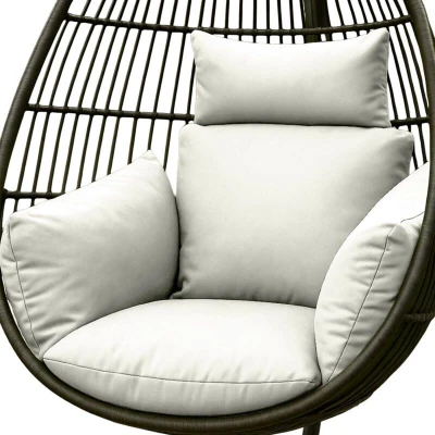 HOMESCAPES Luxury Egg Chair Cushion, Waterproof Hanging Swing Cushion with Removable Headrest & Ties, Thick Plush Head Pillow for Canopy