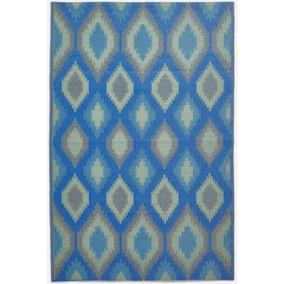 HOMESCAPES Luxury Extra Large Outdoor Rugs for Garden Patio Waterproof 100% Recycled Plastic Mat Carpet 150 x 240cm Reversible Blue & Green Geometric Rug “Amber, Indoor/Outside Portable, Seamless