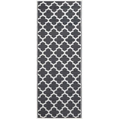 HOMESCAPES Luxury Runner Outdoor Rugs for Garden Patio Waterproof 100% Recycled Plastic Mat Carpet 75 x 200cm Reversible White & Black Geometric Rug Nola, Indoor/Outside Portable, Seamless