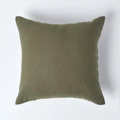 HOMESCAPES Luxury Soft European Linen Pillowcase Plain Dark Green Continental Textured Natural French Flax Fibre & Pure 100% Cotton Blend Khaki Square Pillowcase, 40 x 80 cm
