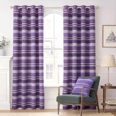 HOMESCAPES Mauve Purple Lilac Eyelet Curtain Pair 167cm (66") Wide x 228cm (90") Drop Morocco Stripe Design Ring Top