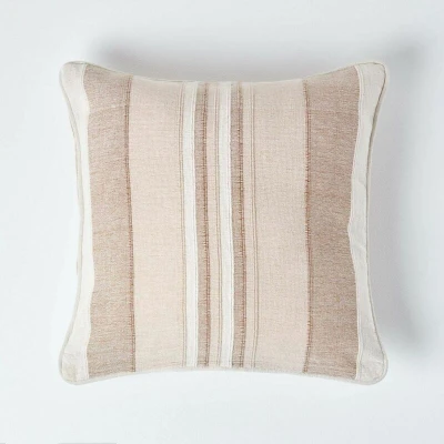 HOMESCAPES Morocco Striped Cushion Cover 24 x Inches Beige Natural Cream 100% Cotton Coordinating with Throws and Curtains Easy care Washable at home