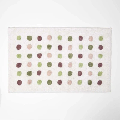 HOMESCAPES Multi Coloured Cotton Bath Mat with Polka Dot Design Super Absorbent Tufted Bathmat, 50 x 80 cm