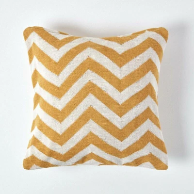 Soft mustard and off-white knitted cushion cover, woven from 100% cotton with a geometric zigzag design. Size: 45 x 45 cm (18 x 18”) square. Colour: Mustard. Expertly knitted from a soft and durable 100% cotton, soft and comforting cushion cover is perfect for adding colour to a sofa or bed. Machine washable at home, the cover will become even softer with use. A decorative square scatter cushion with easy to use zip closure, feather and super microfibre cushion inserts are sold separately and are available from Homescapes. Featuring an on-trend mustard and off white chevron pattern that will introduce colour and a contemporary style into any room. Matching sofa and bed throws are available in large and extra-large sizes. Homescapes geometric style throw and cushions are also available in grey. The perfect place for all your homeware needs, Homescapes were established in the year 2000 and offer an exclusive collection of co-ordinating soft furnishings that will help you to add those finishing touches to transform your home.