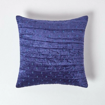General description The HOMESCAPES Navy Blue Crushed Velvet Cushion Cover is a stylish addition to any living room or bedroom. This vintage-style cushion cover is crafted from super soft crushed velvet and features hand-stitched embroidered crosses for added texture. With a plain reverse, it is easy to style and layer on sofas, beds, or armchairs for enhanced comfort. Technical specifications Brand: Homescapes Size: 40 x 40 cm Colour: Navy Blue Cover Material: 60% viscose, 40% polyester Care Instructions Machine washable at 30 degrees on a gentle cycle Do not iron Other information Pack includes one cushion cover only Zip closure on the reverse side for easy insertion and removal of cushion pad Available in additional sizes: 30 x 50 cm and 55 x 55 cm Pair with Homescapes cushion inserts (sold separately) for added comfort
