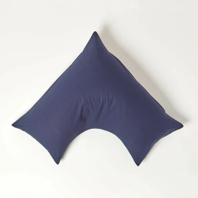 HOMESCAPES Navy Blue Pure Egyptian Cotton V Shape Pillowcase 200 TC 400 Thread Count Percale Equivalent Pillow Case For Nursing Pregnancy and Elderly