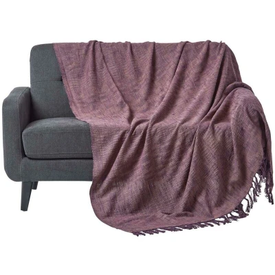 HOMESCAPES Nirvana Mauve Purple Handwoven 100% Pure Cotton Throw 90 x 100 Inches, Bedspread Blanket with Handknotted Tassles in Very Durable and Heavy Quality, Easy Care Washable at Home