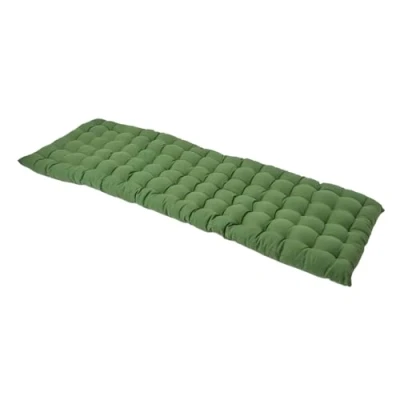 ManoManoGeneral description The HOMESCAPES Dark Olive Bench Cushion is designed for three-seater benches, providing a stylish and comfortable seating solution for both indoor and outdoor use. Woven from 100% cotton, this cushion features a supportive polyester filling and a tufted design for added comfort. Its dark olive color adds a contemporary touch to any space. Technical specifications Brand: Homescapes Size: Three seater (143 x 48 x 5 cm) Colour: Dark Olive Cover Material: 100% cotton Filling: 100% Poly fibre Care Instructions: Machine washable at 40°C Pack Includes: 1 Bench pad Usage This garden bench cushion is perfect for transforming uncomfortable benches into cozy seating areas. It can be used both indoors and outdoors, making it versatile for various settings. However, it is important to note that the cushion is not waterproof, so it should be kept out of direct sunlight and rain when not in use. Other information