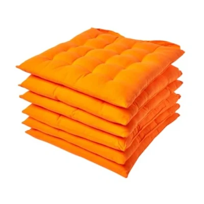AmazonHomescapes 100% cotton set of 6 dining chair cushions Featuring 2 buttoned chair straps for secure seating Orange colour dining room seat cushion Square cushion measures approximately 40 cm x 40 cm and 6.5 cm thick Machine Washable at 40°C. When not in use keep out of direct sunlight and rain