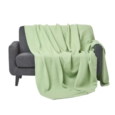 HOMESCAPES Organic Cotton Waffle Blanket/ Throw Sage Green, 280 x 230 cm