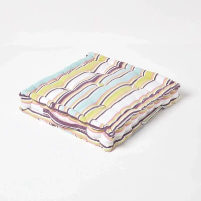 HOMESCAPES Osaka Multi Stripes Large Floor Cushion 100% Cotton 50 x 10 cm Square Indoor Garden Dining chair booster Seat Pad