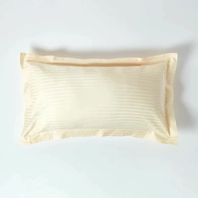 HOMESCAPES Pastel Yellow Pure Egyptian Cotton King Size Oxford Pillowcase 330 TC 500 Thread Count Percale Equivalent Satin Stripe Pillow Case
