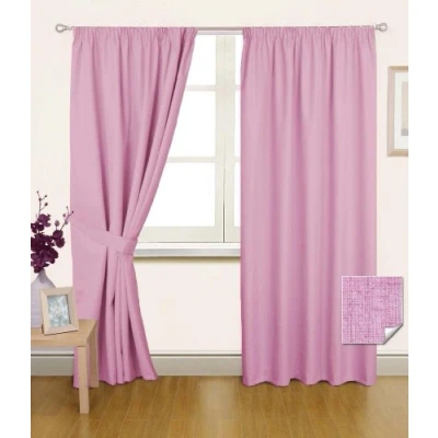 HOMESCAPES Pencil Pleat Pink Thermal Blackout Curtains Pair Width 66 x 72 Inch Drop Genuine 3 Pass Insulated Noise Reducing Premium Linen Look with Tie Backs