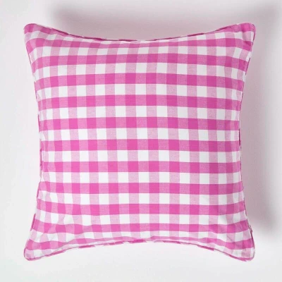 HOMESCAPES Pink and White Gingham Cushion Cover 60 x cm (24 24) Block Check Pattern 100% Cotton Decorative Large Square