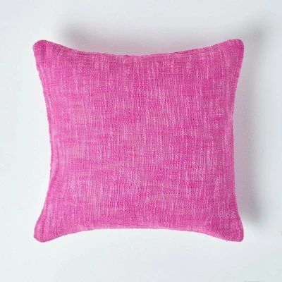 HOMESCAPES Pink Cerise 18 x Inch Nirvana Pure Slub Cotton Cushion Cover Coordinating with Matching Throws and Bedspreads