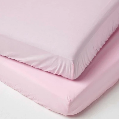 HOMESCAPES Pink Cot Bed Fitted Sheets 70 x 140 cm 2 Pack 100% Egyptian Cotton Percale Soft Hypoallergenic Toddler Sheet Fully Elasticated Skirt Breathable Easy Care 200 TC 400 Thread Count Equiv