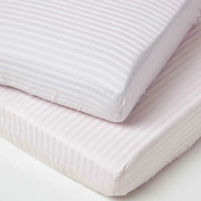 General description Homescapes Pink Cotton Stripe Cot Bed Fitted Sheets are designed for comfort and durability, making them an ideal choice for your child's bedding. Crafted from 100% cotton with a 330 thread count, these sheets are super soft and hypoallergenic, ensuring a gentle touch on sensitive skin. The pack includes two fitted sheets, each tailored to fit cot beds measuring 70 x 140 cm with a depth of 15 cm. Technical specifications Brand: Homescapes Size: Cot Bed (70 x 140 cm, 15 cm Deep) Colour: Pink Material: 100% Cotton Thread Count: 330 Pack Includes: Two Sheets Usage These fitted sheets are designed to provide a comfortable sleeping environment for young children and toddlers. The natural cotton fibers wick away sweat, keeping your child comfortable throughout the night. The sheets are fully elasticated, ensuring they stay securely in place as your child moves during sleep. Other information Care Instructions: Machine Wash Homescapes specializes in high-quality bed linen