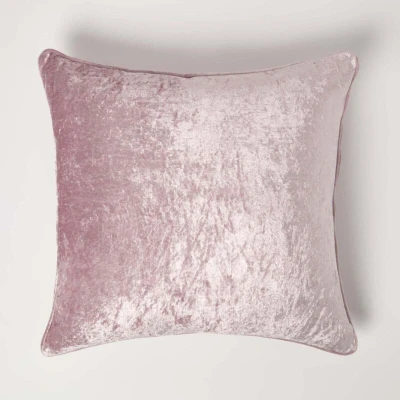 HOMESCAPES Pink Crushed Velvet Cushion Cover 45 x cm Square Modern Scatter Sofa Bed