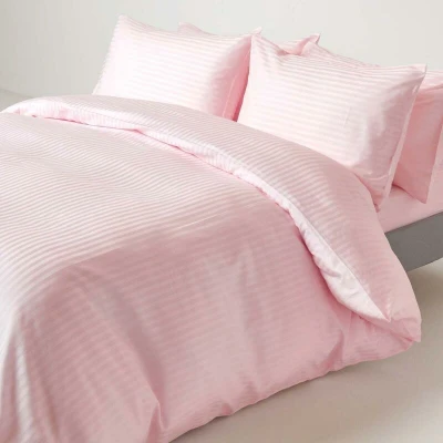 HOMESCAPES Pink Pure Egyptian Cotton Duvet Cover Set Double 330 TC 500 Thread Count Equivalent Satin Stripe Quilt 2 Pillowcases Included Bedding