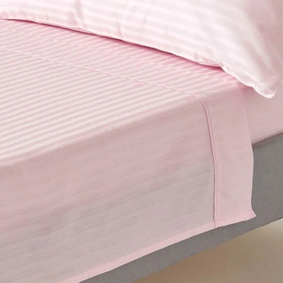 HOMESCAPES Pink Pure Egyptian Cotton Flat Sheet Double 330 TC 500 Thread Count Equivalent Satin Stripe Bed