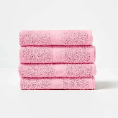 Set of 4 Hand Towels Size: 50 x 90 cm. Colour: Pink. A quality towel for everyday use in a heavy 500 GSM weight from Homescapes in 23 different colours. Six sizes are available in each colour. 100% finely combed cotton fibres ring spun and woven in Turkey. Towels from Turkey are known for the luxury they bring to every bathing experience. Retains its softness after wash due to higher quality of cotton fibre used in manufacturing. Washable at 40°C. For the best care of your towel, Homescapes recommends not to use fabric conditioner/softener whilst washing, and not to iron your towels as both reduce absorbency.