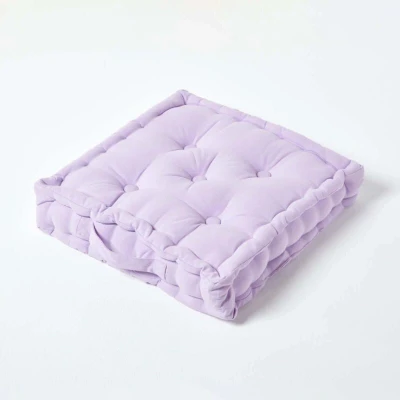 HANDCRAFTED COTTON: Plain floor booster cushion with cover woven from pure 100% cotton. Super soft and naturally breathable. Featuring a hand quilted design and an easy carry handle. Colour: mauve, light purple. Measures 50 x 50 x 10cm. THICK & PLUSH SUPPORT: Relax with specialist super microfibre for the perfect support. Highly resilient fibres to ensure these floor seat pads remain thick and firm over multiple uses. Spot clean only. CERTIFIED SKIN FRIENDLY: Hypoallergenic seat cushions. Oeko Tex Standard 100 Certified, planet friendly with no harmful chemicals. Suitable for sensitive skin and pets. VERSATILE USAGE: Ideal use for both indoors or outdoors as floor cushions, seat pads, booster cushions for the elderly, dining chair cushions or garden cushions for picnics. Perfect for playing board games with loved ones. BRITISH EXPERTISE: With more than 24 years of expertise, Homescapes offers uniquely affordable luxury and is a leading manufacturer of home decor in the UK and Europe. Our luxury products are crafted for a sustainable lifestyle. Discover our exclusive collection of home and garden accessories, the range includes matching seat cushions, bench seat pads, garden floor cushions and garden rugs.