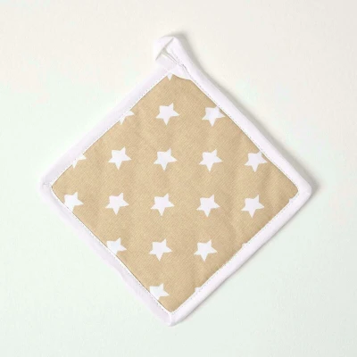 HOMESCAPES Pure Cotton Pot Holder Stars Beige White 20 x cm Fully Coordinated Washable Kitchen Linen