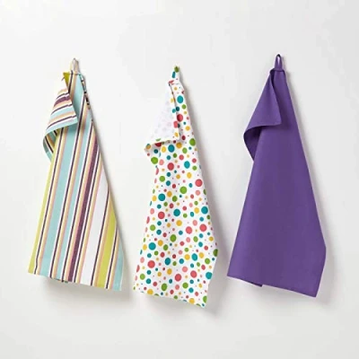 General description Beautiful kitchen linen set from Homescapes, featuring a stylish purple stripe design. This set includes three tea towels, perfect for adding a touch of elegance to your kitchen while being practical for everyday use. Technical specifications Brand: Homescapes Size: 50 x 70 cm Colour: Purple Material: 100% Cotton Care Instructions: Machine washable at 40°C Pack Includes: Three Tea Towels Other information Coordinating soft furnishings like aprons, double oven gloves, pot holders, oven gloves, dining seat pads, curtains, cushions, and fabrics by the meter are also available with Homescapes. This allows you to create a cohesive and individualistic decor style in your kitchen.