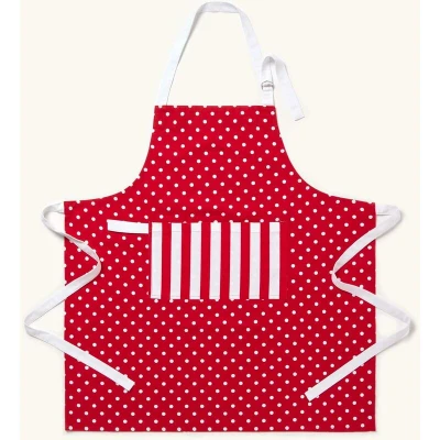 ManoManoGeneral description This HOMESCAPES Red Polka Dot Cotton Apron is a stylish and functional addition to your kitchen. Made from 100% cotton, it features a vibrant red color with a playful polka dot pattern. This apron is part of a well-coordinated range of kitchen linens, allowing you to create a cohesive look in your kitchen decor. Technical specifications Brand: Homescapes Size: 80 x 85 cm Colour: Red Material: 100% Cotton Care Instructions: Machine washable at 30°C Other information Pack Includes: One Apron Coordinating items available: double oven gloves, pot holders, oven gloves, tea towels, dining seat pads, curtains, cushions, and fabrics by the meter.