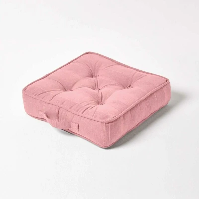 ManoManoGeneral description A versatile home accessory, the HOMESCAPES Pink Rajput Ribbed Cotton Floor Cushion can be used as a floor cushion, armchair booster cushion, or a garden chair pad. Each cushion is carefully handcrafted with a ribbed effect and features a handle for easy mobility between rooms. Technical specifications Brand: Homescapes Size: 40cm x 40cm x 8cm (16" x 16" x 3") Colour: Pink Cover Material: 100% cotton Filling: Polyester Care Instructions Spot clean only for minor stains Machine washable if required Other information Pack Includes: One floor cushion