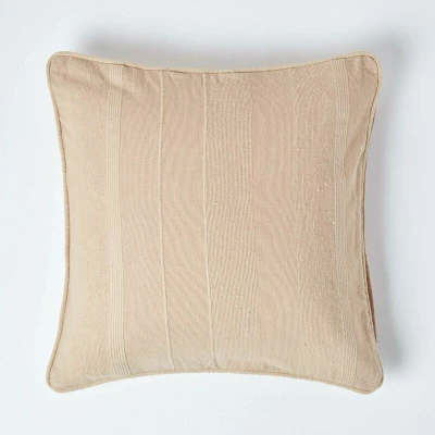 HOMESCAPES Rajput Ribbed Cushion Cover 24 x Inches (60 60cm) Beige 100% Cotton Coordinating with Throws and Curtains Easy care Washable at home