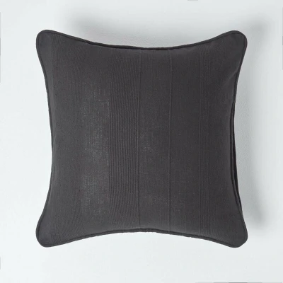 HOMESCAPES Rajput Ribbed Cushion Cover 24 x Inches (60 60cm) Black 100% Cotton Coordinating with Throws and Curtains Easy care Washable at home