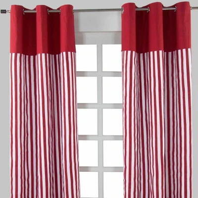 HOMESCAPES Red 1 Thick Stripe Eyelet Curtain Pair 137cm (54") Wide x 228cm (90") Drop 100% Cotton Ring Top Striped Curtains