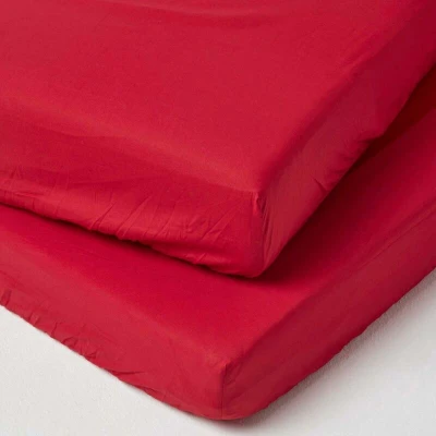 HOMESCAPES Red Cot Fitted Sheets 60 x 120 cm 2 Pack 100% Egyptian Cotton Percale Soft Hypoallergenic Sheet with Fully Elasticated Skirt Breathable Easy Care 200 TC 400 Thread Count Equivalent